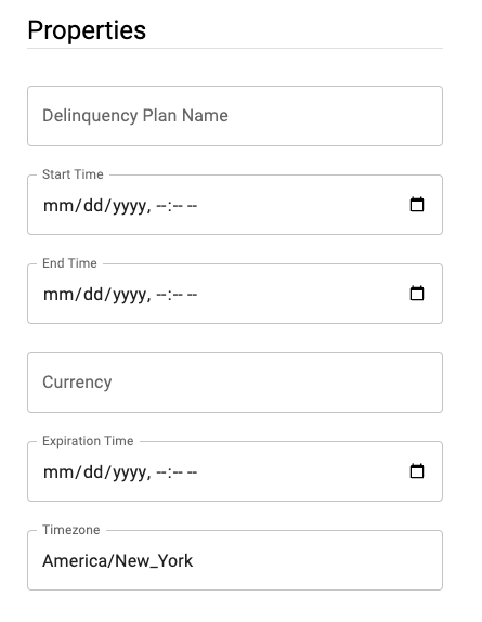 hideDefaultFields (boolean, optional): If true, default fields such as start and end time, delinquency plan name, etc., are not displayed in the form.