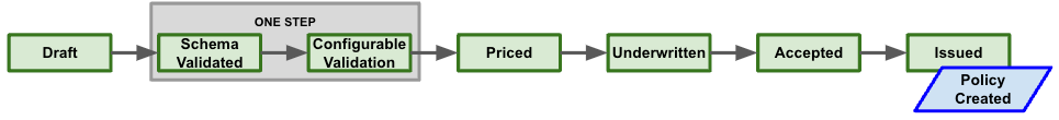 draft: The quote is mutable, so its data, coverage terms, and other attributes (likestartTime,endTime, etc.) can be changed. Newly created quotes are indraftstate. This is the only state that allows these changes. Note: theproductNameis the basis for the quote, including its validation operations, and as such is not mutable after creation.validated: The quote has been validated, both against its configuration (based on its product) and any custom validation.priced: The quote has pricing generated.underwritten: The quote has passed underwriting checks.accepted: The quote has been accepted but not yet issued. This state requires successfully passing underwriting checks.issued: The quote has been issued, creating the resultant policy.